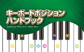 「キーボードポジションハンドブック」は、コードの構成を目で見てわかるようにデザインされたガイドブック。理論書のような解説を読まなくても3オクターブ分の鍵盤図にポジションを記号で表記している。