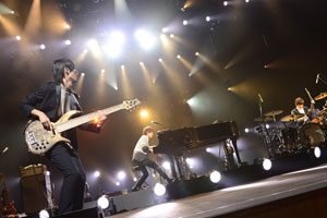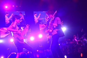 オープニング。シンフォニックなSEが途切れた刹那、ドラムが唸り出す。それは次の四半世紀に向けた最初の一打を、前日25歳になったばかりの河邉徹(Dr)が3300人のオーディエンスと共有した瞬間。音源よりもずっとエモーショナルにアレンジされた「偽善者の声」のイントロのドラムソロが、ライブの幕開けを告げる。