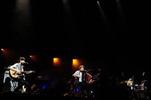 ちなみにこの日、アコースティックアレンジをほどこした「『あ』『い』をあつめて」では、奥野がアコースティックギター、杉本がアコーディオン、河邉がジャンベ(西アフリカのパーカッション)を鳴らし、杉本は終盤の「管制塔」でもアグレッシブなギターソロを聴かせた。後から本人に聞けば「めっちゃ緊張してました。ヒヤヒヤだったんですよ」と笑ったが、ステージで時おり聴かせるこのギターが実はすこぶる評判がいい。もちろんそれは、WEAVERのピアノバンドとしての存在がすでに確立されていればこそだ。メンバー自身もまた、今春行ったツアー<Piano Trio Performance>において自覚と自信を新たにしたことは想像に難くなく、なるほどすべてが成るべくして成ったこの日のライブだった。