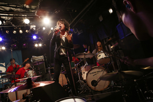 SEが止まり、高橋浩司のカウント代わりの気合いの入った雄叫びを合図に、ステージ中心に向かって円を描くように並んだドラムが、一斉に激しく打ち鳴らされる。爆音が爆風となって会場内を吹き抜けるような、凄まじいパワーでDQSのワンマンライヴが幕を開けた。