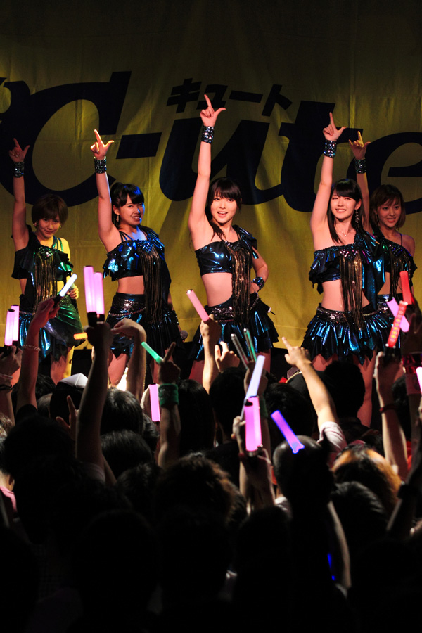 最初にお伝えしておくと、いや、伝えるまでもないかもしれないが、天気はもちろん雨である。“ハロー!プロジェクト最強の雨女”とも言われる矢島舞美率いる℃-ute。<JAPAN EXPO>からの招待を受けてフランスに降り立った日も雨。さらにフランスから日本に帰ってきた日はゲリラ豪雨。そして今日7月14日。昼夜2回公演の第二部がスタートする直前に、原宿一帯はスコールのような激しい雨に見舞われた。もっとも、℃-uteのファン、team℃-uteからしてしまえば、これは“いつものこと”。雨というのは「℃-uteは今日も絶好調」というサインのようなものである。