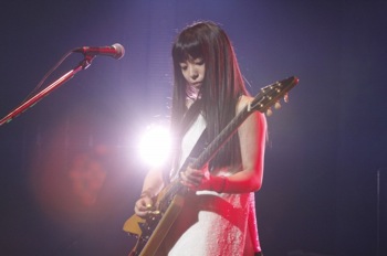 そして披露された「LOUD!~憂鬱をぶっとばせ~」ではフライングVギターを手に華麗なライトハンド奏法を初披露。写真の通り、ギタリストの西川進とのライトハンド奏法のユニゾンがこのライブの要チェックポイントとなっているので、お楽しみに。