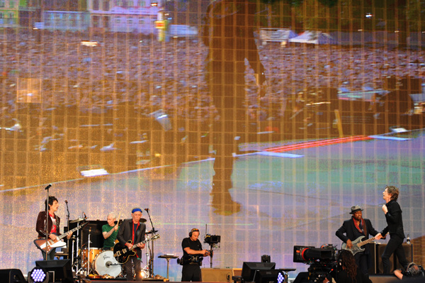 44年前、同公園で開いたフリー・ライヴに近づけようと、巨大なオークの木の模型が設置されたステージ。バンドが登場する5分前になると、「Let’s Spend The Night Together」が流れ、“今夜一緒に夜を過ごす”オーディエンスの姿がビッグ・スクリーンに映し出された。6万5,000人のオーディエンスからの割れるような拍手喝采と大合唱で盛り上がったところ、ステージが暗転。ドラム隊によるトライバル・ビートが流れた後、「Start Me Up」の鋭いイントロが鳴り響く。このギター・リフと共に大スクリーンにキース・リチャーズが映し出されると、それだけで感極まり涙ぐむファンの姿が続出する。