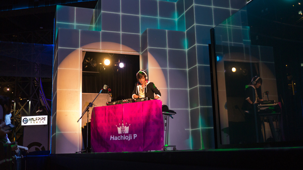 DJとしても活躍している八王子Pは、7月17日に発売したニューアルバム『ViViD WAVE』の全曲を披露。そして彼の代表作でもある「Sweet Devil feat.初音ミク」「エレクトリック・ラブ feat.初音ミク」など計22曲を約1時間のライブで披露した。また、kz(livetune)とのコラボ作として昨年話題になった「初音ミク-Project DIVAF」のタイアップソングにもなっている「Weekender