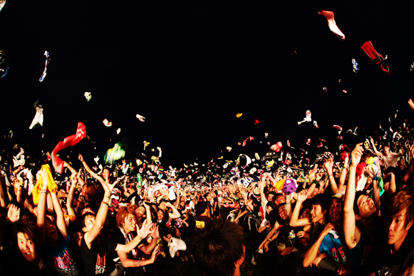 終演後、再びステージで挨拶をするメンバー。ひたすら「スッゲー!!!」ばかり言い合っていたらしいが、その気持ちはこのフェスに参加した全員が思っているだろう。帰途につくバスの中、参加者たちは今年の感想を言い合いながらもうすでに来年の作戦を練っていた。