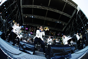 白スーツでビシっと決め、うだるような暑さもなんのその! 照りつける太陽を味方にし、東京スカパラダイスオーケストラは大人の魅力溢れるご機嫌なスカサウンドで会場を汗だくのダンスホールに変えてみせた。TAKUMAも堪らず踊りだした「DOWN BEAT STOMP」、セクシーで暴れん坊な「ルパン三世のテーマ‘78」、心躍るホーンの音色がオーディエンスのテンションを底上げしていく。