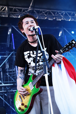 10-FEETとは同郷で昔から仲の良いROTTENGRAFFTY、1曲目「零戦SOUNDSYSTEM」からギターのKAZUOMIは気合が溢れて速攻でダイブをしてみせた! さらにMAN WITH A MISSION・Tokyo Tanakaがガウガウ踊り、HEY SMITH・Iori、満がホーンで煽り、TAKUMAがギターで乱入と豪華メンツが入り乱れる。京都リスペクト!な「響く都」では、N∀OKIとファンの生の声同士の張り合いで気合を見せる。夏を加速させるような勢いある楽曲陣でファンの気持ちをひとつにまとめあげた。
