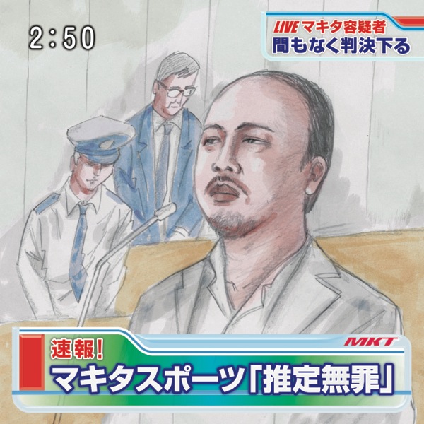 さらに、収録曲と共に今作のジャケット写真も公開された。アルバムタイトルの『推定無罪』にちなみ、“架空の音楽裁判”で証言台に立つ“マキタ被告”の様子がテロップと共にニュース速報で報道されているという衝撃的なデザインで、法廷画のイラストレーションは、本作のジャケット・ブックレット周りの監修を務める天久聖一との共著「バカドリル」などでも有名なマンガ家・タナカカツキが手がけた。