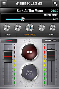 ▲CUBE JAMはインポートした楽曲にあわせて演奏した自分のギターを録音可能。センターに定位するヴォーカルやギターソロを消せるセンターキャンセル機能も面白い。