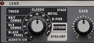 ▲LEADチャンネルに用意された著名アンプをモデリングした10種類のCOSMアンプ。GAINでキャラクターがグッと変わる。