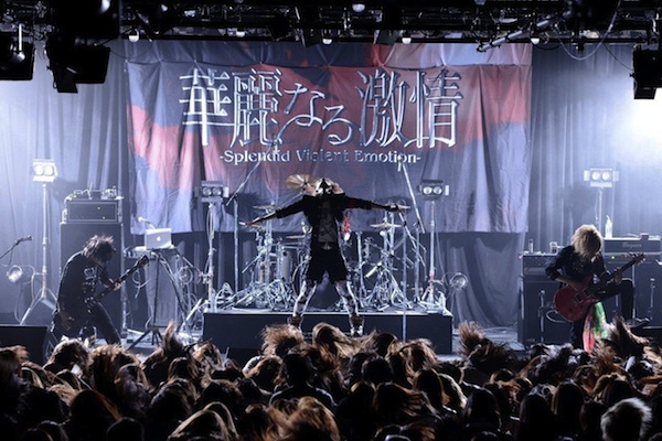 「リキッドいけるかー!」とベースのちょびが叫び始まった「LOVE IS DEAD」では会場と一体になり、美しさと激しさが同居したステージが展開された。そして続く最新シングルの「ゴールデンキネマ劇場」ではレトロな雰囲気が漂う中、彼らの提示する”レトリーモ”を叩き付けた。「夏の行方」ではモッシュ、タオル回しで会場は熱気の渦に。その熱気をさらに加速させる「毒彩ギーク」でラストを締めくくった。