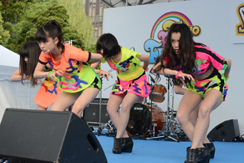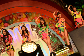 27日&28日の2日間大々的に行われた<TIF>の2日目に登場した9nineは、DOLL FACTORY、SMILE GARDENという2つのステージに登場、初披露となった夏フェスらしい蛍光色の衣装を身にまとい、最近の9nineライブの定番となっているオープニングダンスからステージはスタートとなった。