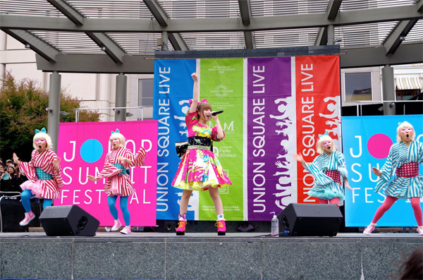 また今年の新企画の一つとして、米国著名観光スポットのユニオンスクエアにて、「J-POP LIVE@Union Square」を開催。当日は早朝から多くの現地ファンがユニオンスクエアに殺到。海外ファンも多いきゃりーぱみゅぱみゅやDaichiが1万人の観衆を魅了し、待ちに待ったと言わんばかりの現地ファンの期待に応える熱いライブを繰り広げた。