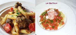 続いては落合努シェフ、大阪はペンネ 牛すね肉と玉葱の煮込み、東京はズワイガニのせ トマトの冷製 カペッリーニでいずれも\1,000。