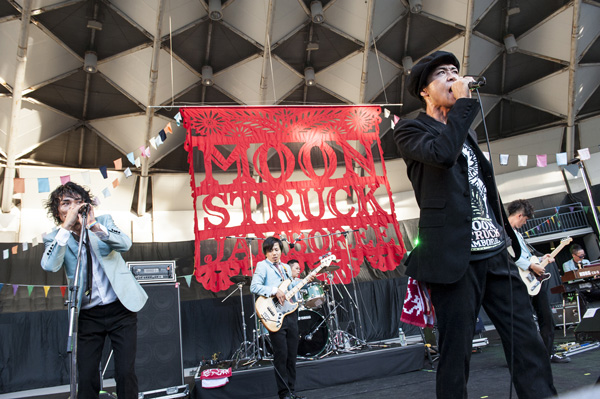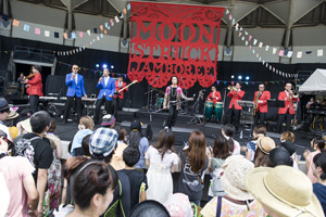 結成15周年を迎えたスカバンドDOBERMANが主催する野外イベント<MOONSTRUCK JUMBOREE>が、2年ぶりに大阪・服部緑地野外音楽堂で開催された。出演はDOBERMAN、フラワーカンパニーズ、MONGOL800、カジヒデキ、Blue Beat Players、OLEDICKFOGGY、そして急遽「開会の挨拶」として出演が決まったTOMOVSKYの全7組。