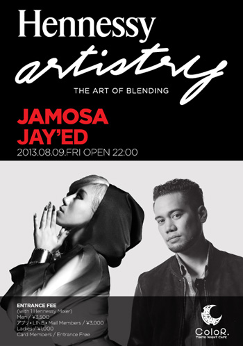 JAMOSA&JAY’EDが出演する<Hennessy artistry Live Session – JAMOSA & JAY’ED>が、ColoR. Tokyo Night Cafe(六本木)にて8月9日(金) 22:00~に開催致される。