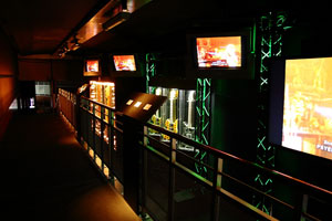 ミュージアム内には、hideが愛用していた衣装やギター、直筆のメモなどの貴重なアイテムを120mにも及ぶ船内の長い通路に展示。大阪会場で新たに設けられたドレッシングルーム・バックステージエリアでは、hideが大阪でライブを行った際の映像と合わせて、楽屋で使用した衣装ケースやステージで使用した機材などを間近で見ることができる。