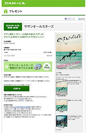 <DAM★とも×サザンオールスターズ(ピースとハイライト)プレゼント企画 概要>