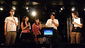 イベントのラストはライヴ。まず登場したのが「Band-in-a-Box」公式サポートバンドのMyTR。「Coca-Cola&Music Unlimited&BARKSオンラインコンテスト」で最多投票賞を受賞したボーカル3人+ギター1人の奄美大島出身のグループだ。メロウなナンバーも交えつつ、パワフルでノリのいいボーカルとバンドアンサンブルで3曲を聴かせる。ライヴ後には「Band-in-a-Boxで今後いっしょにコラボして曲を作りたい」とコメント。続いてasfiの二人はBuono!のカバー『初恋サイダー』を熱唱。最後にはイーフロンティア西山氏が「Band-in-a-Boxはカンタンに作れる作曲ソフトです。ぜひ手にとっていただけたらありがたいです」とコメントし、イベントをしめくくった。