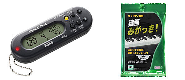 今回のキャンペーンは、9月15日までのキャンペーン期間中に、「コルグ・ハイブリッド・ピアノ」製品の購入者全員にもれなく、温度・湿度計付メトロノーム「Humidi-Beat」と、鍵盤クリーナー「楽器みがっき!」をプレゼントするというもの。