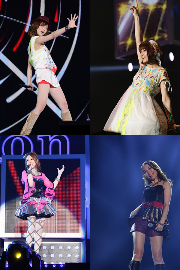 ライブも折り返しを迎え、ステージに現れたのはFLOW。47都道府県を回る全国ツアーから戻ったばかりというFLOWだが、ハードスケジュールをまったく感じさせない圧巻のパフォーマンスで、9月4日発売の新曲「常夏エンドレス」をはじめとする4曲を熱唱した。中でも『NARUTO』OPテーマ「GO!!!」ではコール&レスポンスで会場全体が一体となり大合唱。さらにFLOWの呼びかけに応えて会場全体にジャンプによるウェーブが発生するなど、この日最高潮の盛り上がりとなっていた。