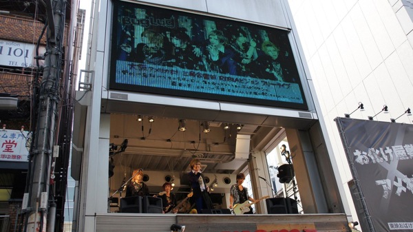 ライブは全4曲を披露して完全燃焼。約30分の演奏中にも人は増え続け、あわや中止目前まで追い込まれるほど、三角公園が人でごった返したという。