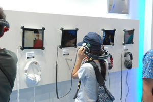 ▲オーディオテクニカ製のヘッドホンをズラリと設置。後方はフォトステージコーナー。