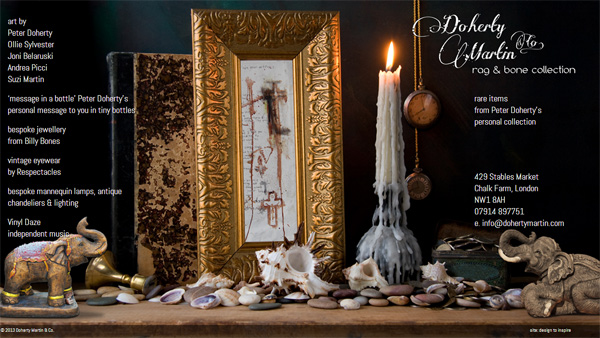 お店の名前は<Doherty & Martin Rag & Bone Collection>。オフィシャル・サイトには「ピート・ドハーティのパーソナル・コレクションからのレア・アイテム」と記されており、ピートからのパーソナル・メッセージが入った小さなボトル“Message in a bottle”などがあるという。
