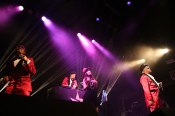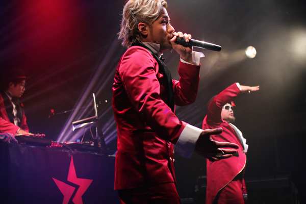 チケットが完売し、運よくチケットを購入できたファンで会場は溢れかえり、歓声があがる中、メンバーが赤のタキシードに身を包み「It’s Show Time」からライブはスタート。JUN(MC)とSHIN(MC)が繰り広げる歌やラップにオーディエンスも心躍る。