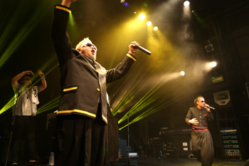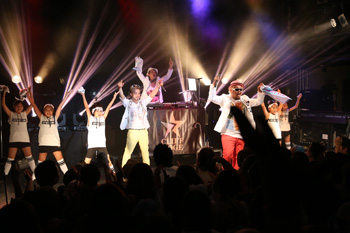 JUNが早速“OK!みんな手をあげて!”とオーディエンスを煽り「Million Kiss~skit~」「KISS! KISS! !KISS!!!」と続き、タオルを振りまわし夏にピッタリなチューンで湧かせた「“お”やってる!?ライダー」でヒートアップしていく会場。