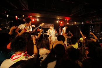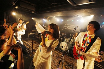続いては7!!(セブンウップス)、沖縄発の男女4人組のバンドが登場した。恋愛をテーマにした甘酸っぱい世界観が特徴的だが、ライブはテンション高くハツラツとした演奏が印象的だった。 タオルを回したり、コールアンドレスポンスをしたりと、雰囲気を存分に盛り上げた。