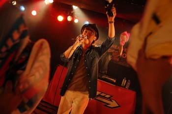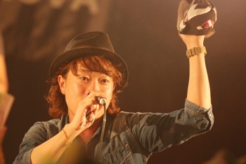 恒例のプレゼントタイムでは、出演者全員のサイン入りオリジナルTシャツもプレゼント。そして最後のアーティスト、ハジ→がステージに登場する。登場の音楽は太鼓や笛の音など日本らしいものであり、冒頭の自己紹介で「杜の都仙台」など、個性をしっかりとアピールしていた。楽曲はラップやレゲエのシンガーのような独特のスタイルの歌詞構成に、サビのメロディアスな部分での歌声の強さが際立っていた。