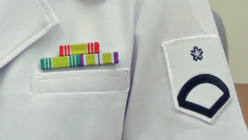 次に胸に輝くバッヂだが、これは「防衛記念章」。自衛官が職務遂行上の功績によって表彰されたり、経歴や補職を記念して制服に着用できるもの。