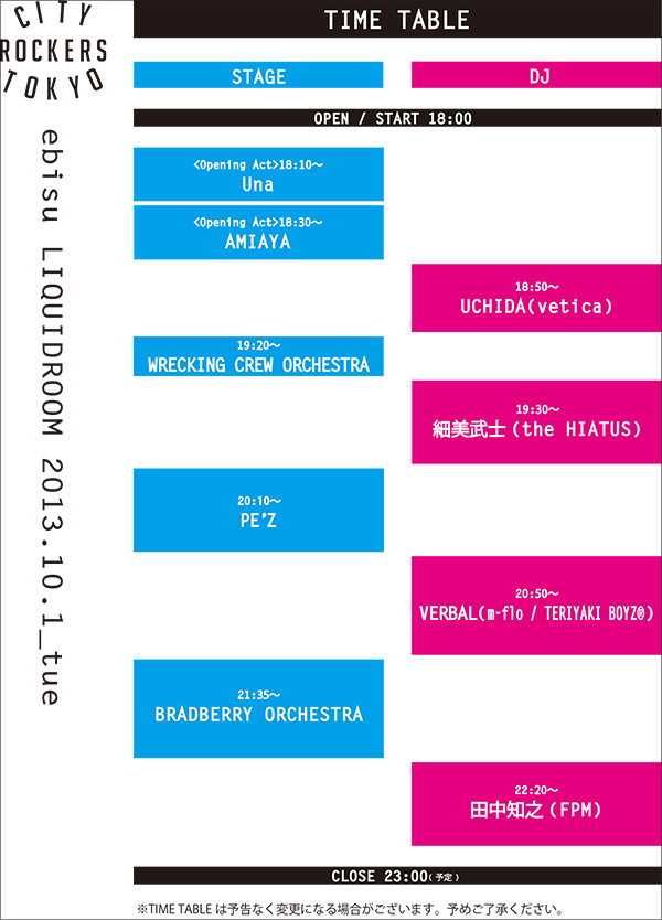 “ライブ”+“クラブ”+“原宿”が融合!<CITY ROCKERS TOKYO>タイムテーブルを公開