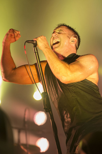 トレント・レズナー:もちろん、どういう環境でどんなパフォーマンスを見せるのか、ということは常に念頭に置いている。アリーナか何かにNIN単独のライヴを観るのが目的で来ているオーディエンスが相手ならば、俺としては「おまえらは、すでに俺のものだ」というような感覚が持てる。「そっちから俺の空間に入ってきたんだから、俺のいささか自惚れ気味の旅に同行してもらうぜ。それが観たくて来たんだろう?」とね。一方でフェスティヴァルとなると、必ずしも会場内にいる全員が自分を観に来ているわけではないし、たまたま居合わせたとか、他にも色んなバンドが出ていて、向こう側にもステージがあって時にはそっちの照明が当たったり…と、まあ、気が散るわけだ。だから俺も少しとっつきやすいセットリストを組む傾向がある。そのぶん今回は、見てもらえれば分かる通り、非常に風変わりなステージを展開することで埋め合わせているつもりだけど。