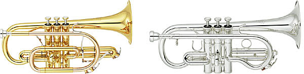 ▲Neoシリーズとして登場したカスタムB♭コルネットYCR-8335とカスタムE♭コルネットYCR-8620S。