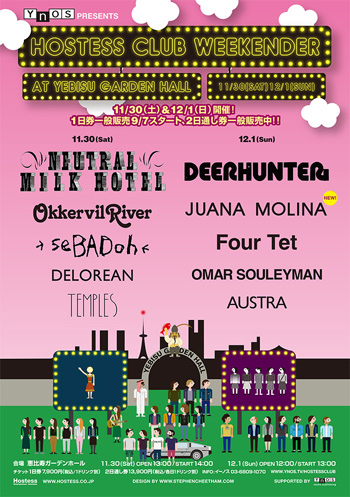 ニュートラル・ミルク・ホテルやディアハンター、さらにFour tetやSebadoh(セバドー)など注目アクトが目白押しの<Hostess Club Weekender>は、9月7日から1日券の一般販売がスタート。2日通し券は現在引き続き一般販売中だ。