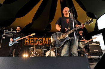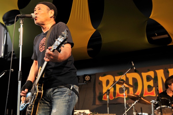 日が暮れたREDEMPTION STAGEに到着すると、これまでのの集まり方とは大きく違い、ステージ前から後方まで、たくさんの人が芝生に腰を下ろしていた。年齢層は高く、ご夫婦や家族で泉谷しげるの登場を待っている様子だ。泉谷がフェスに出演する。叩き上げのフォーク・シンガーとしてゲリラライヴも数多くおこない、場所の大小を問わず、ステージで完全燃焼するアーティストなだけに、今回のステージも興味が尽きない。