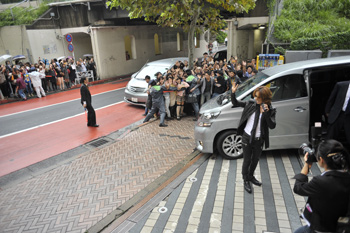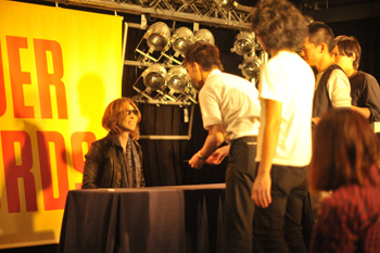 YOSHIKIが渋谷に登場、タワレコ渋谷店の周りは両手をXに交差したX JAPANファンに埋め尽くされた。