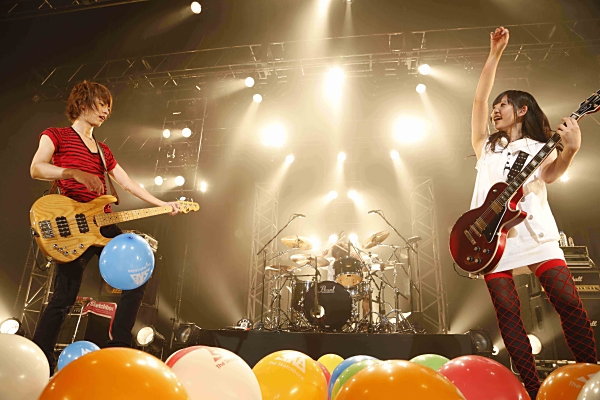 終盤戦に入っても会場の盛り上がりは衰えず、ライブの流れは「Runway」から全員でタオルを振り回す「シグナル」、手拍子を一斉に行う「traveler」へ。「ドロップ」では天井から色とりどりの風船がファンの上に舞い降り、会場内を飛び交う大興奮のステージとなった。