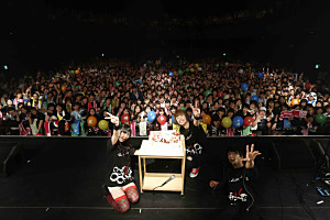 アンコールに応えThe Sketchbookが登場すると、ステージ中央には2周年を祝うケーキが用意されていた。対応に困るメンバーに会場からは「顔」と叫び声が飛び交い、メンバー全員がそれに応え、一人ずつケーキに顔をダイブ。ワイルドにケーキをかじる3人の姿に会場も笑いに包まれる。