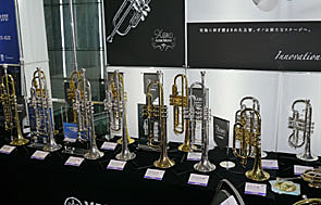▲第4世代のカスタムトランペット“Xeno”シリーズ、第2世代のカスタムトランペット“Xeno Artist Model”、カスタムコルネット“Neo”などの金管楽器の展示。