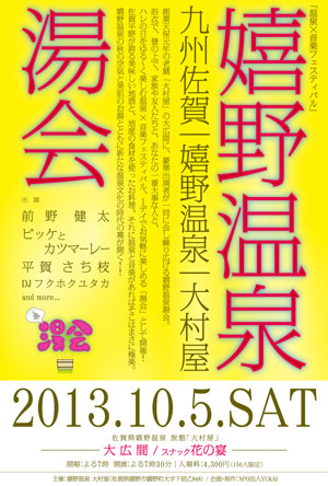 温泉復古の大号令! 温泉×音楽の最新型宴会スタイル「湯会」が九州佐賀・嬉野温泉に再来。10月5日(土)に開催される。