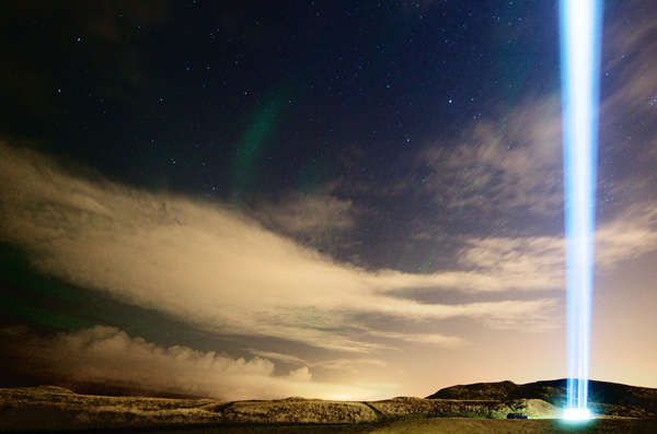 私はアイスランドのイマジン・ピース・タワーをふたたび点灯します。