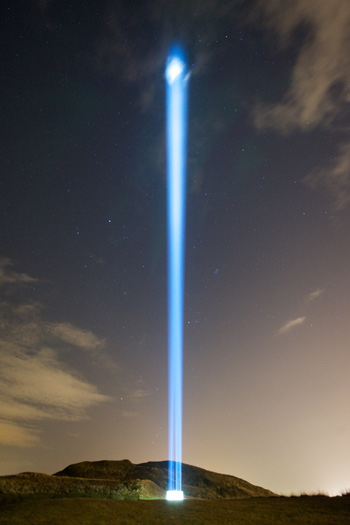 イマジン・ピース・タワーの美しさのひとつは、アイスランド固有の気候とともに断続的に変化する光の強さとまばゆさだ。雲のない夜には、くっきりとして光の柱を作り、雨や雪の日には虹の屈折で、虹色の光を作り、雲の層を通して壮大に反射をみせる。