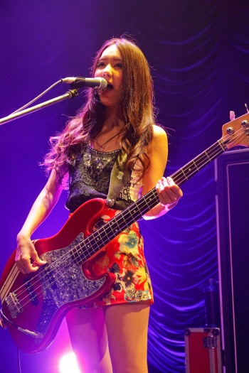 HARUNAのMCに導かれて曲は「下弦の月」へ。フィードバックするMAMIのギターサウンドと紫色の照明が妖しく会場を包み込む。続けて「会わないつもりの、元気でね」と、ヒットシングルを連発。まるで高鳴る心臓のようにパワフルに鳴らされるRINAのドラム、それに呼応するようにTOMOMIの指弾きによる8ビートが真っ直ぐにビートを疾走させる。二人の絡みがバンドのドライヴ感とグルーヴ感を演出、会場の熱気も一気に加速した。この日のステージは、バックにカーテンがあるだけの極めてシンプルなものだった。しかし、むしろ何のてらいも必要としない格好の場を得たかのように、いつもにも増して身軽なムードさえ感じられるステージ上はメンバーの笑顔も多く、演奏に集中しているのがわかる。