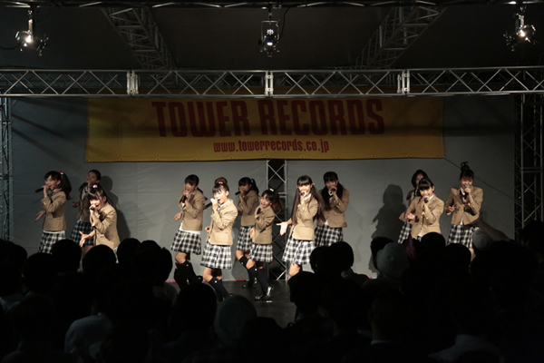 ニューシングル「顔笑れ!!」の購入者を対象としたこのミニ・ライブ・イベント。堀内まり菜が新生徒会長に就任、転入生 ・白井沙樹、山出愛子が加入した、待望の2013年度新体制第1弾シングルのリリースイベントということもあり、イベント開始前からファンの熱気が立ち込めていた。