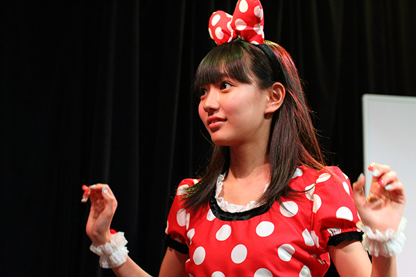 なお、この日の荻野の衣装は、普段の制服姿ではなく、ディズニー好きということからミニーちゃんを意識したドット柄のドレス。そんな彼女に、会場から「ハッピーバースデートゥーユー」の合唱で、イベントはスタートした。