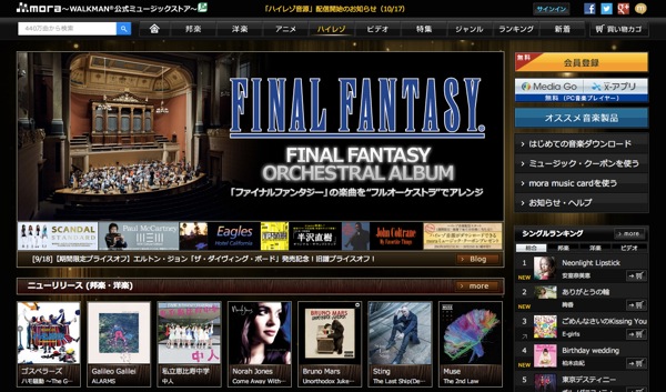 WALKMAN公式ミュージックストア「mora」にて、10月17日より「ハイレゾリューション・オーディオ(以下、ハイレゾ)音源」の音楽ダウンロードサービスが開始となった。