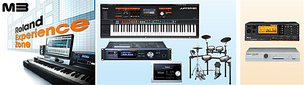 展示コーナーにはシンセサイザー、V ドラム、コンピューター・ミュージック関連製品など、最新のローランド・ギアをスタンバイ。もちろん、存分に試奏が可能だ。